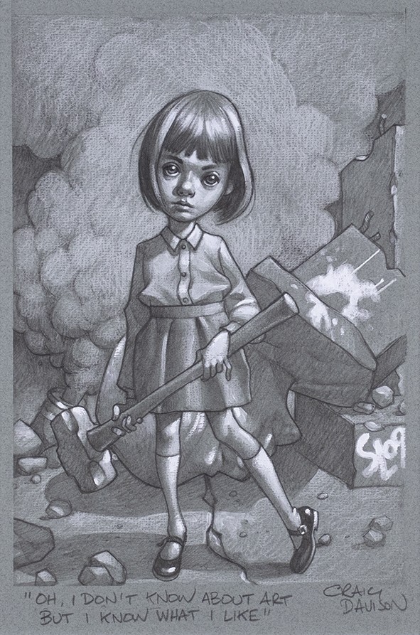 "Oh, I Don't Know About Art, But I Know What I Like", a fantastic limited edition sketch by artist Craig Davison from his Riot Girls series.