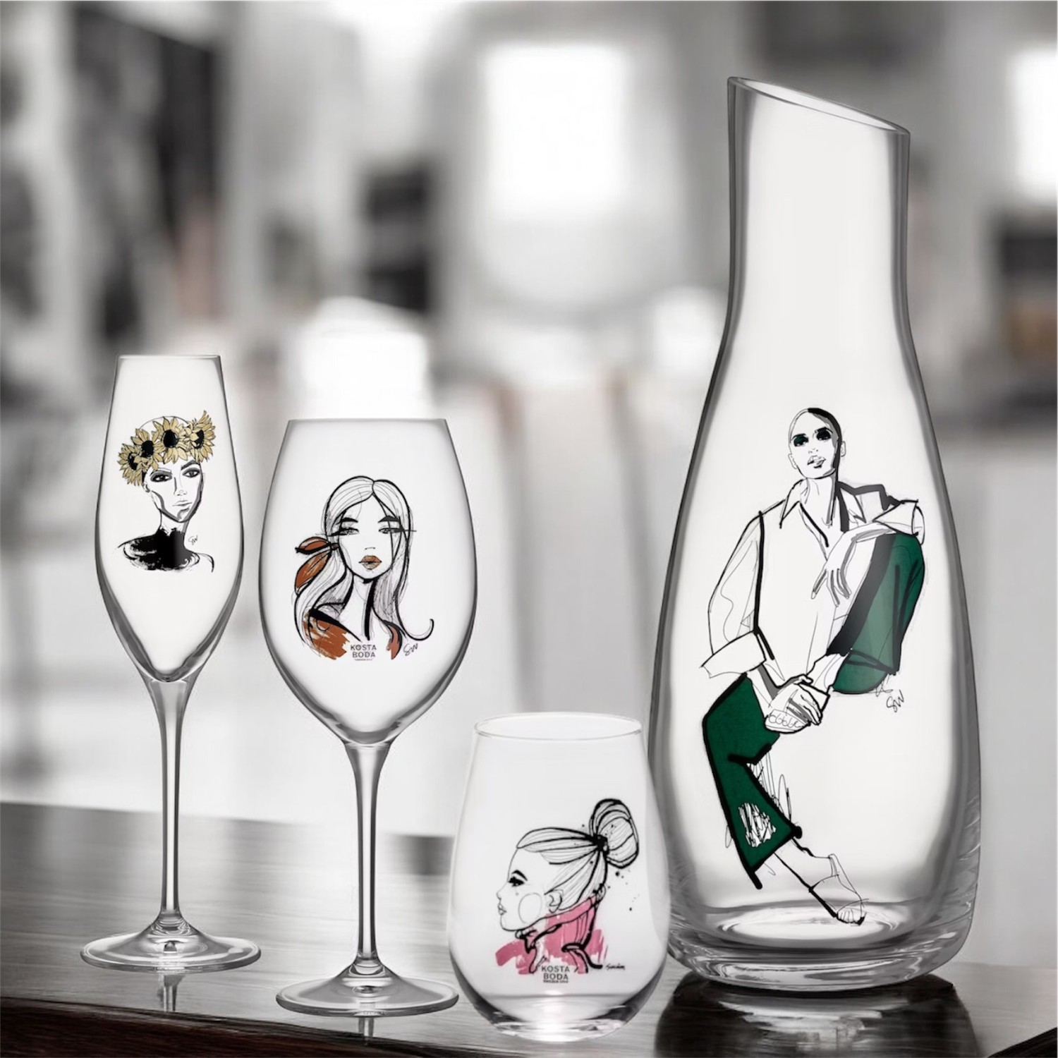 The tumbler glasses in the All About You series from Kosta Boda are about love, longing and passion – strong emotions captured in glass with clean, soft lines and painted motifs with influences from the world of fashion.