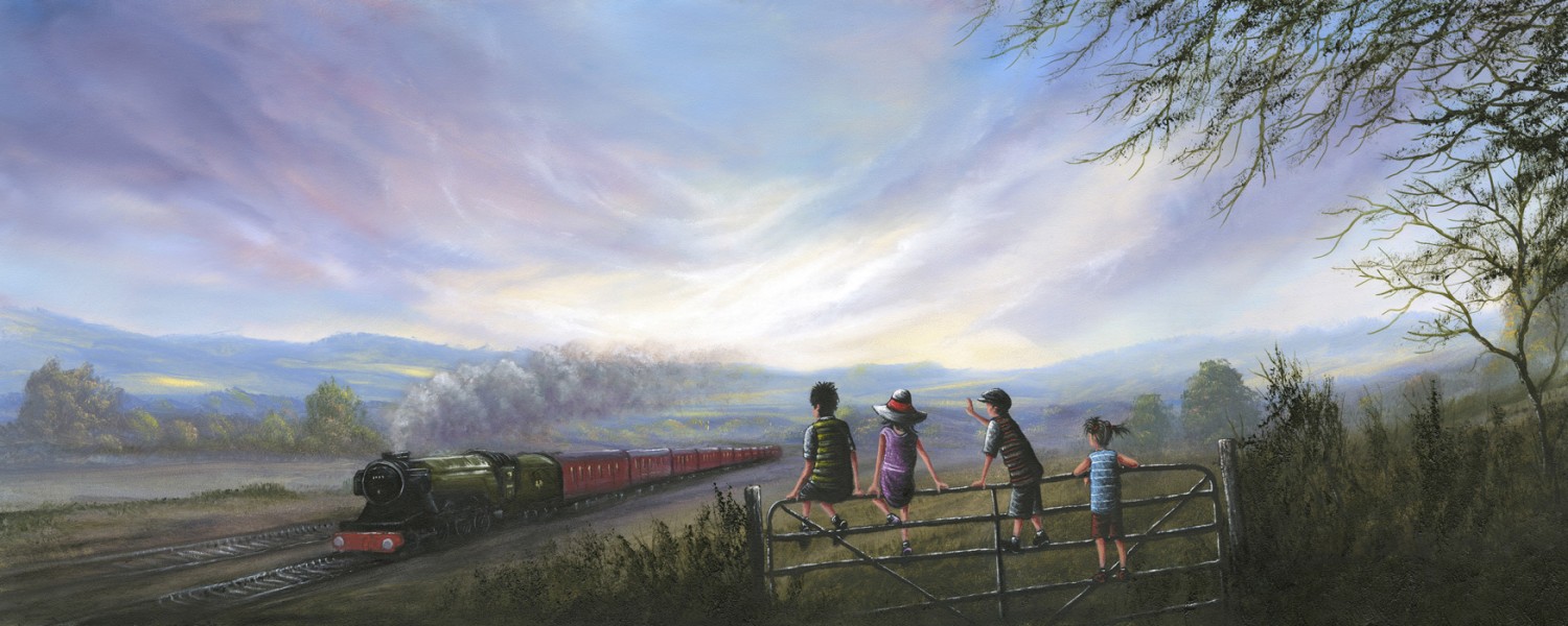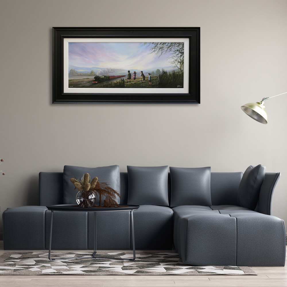 All Tracks Lead To New Adventures celebrates the excitement and anticipation of new journeys. Danny Abrahams captures the spirit of exploration with his signature vibrant colours, bold outlines, and playful storytelling. This panoramic scene invites viewers to embrace adventure and discovery, making it a striking addition to any contemporary art collection.
