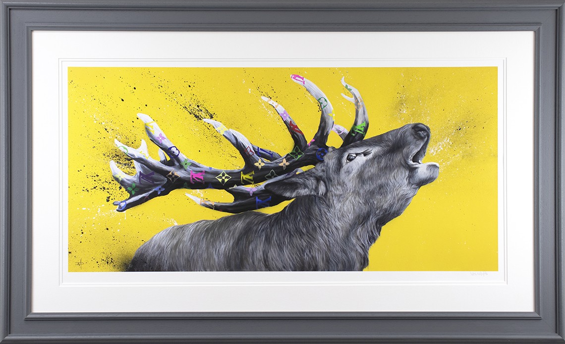 Big Bucks by Dean Martin from his 2020 Spring collection; a stag displaying Louis Vuitton logos on his grand antlers.