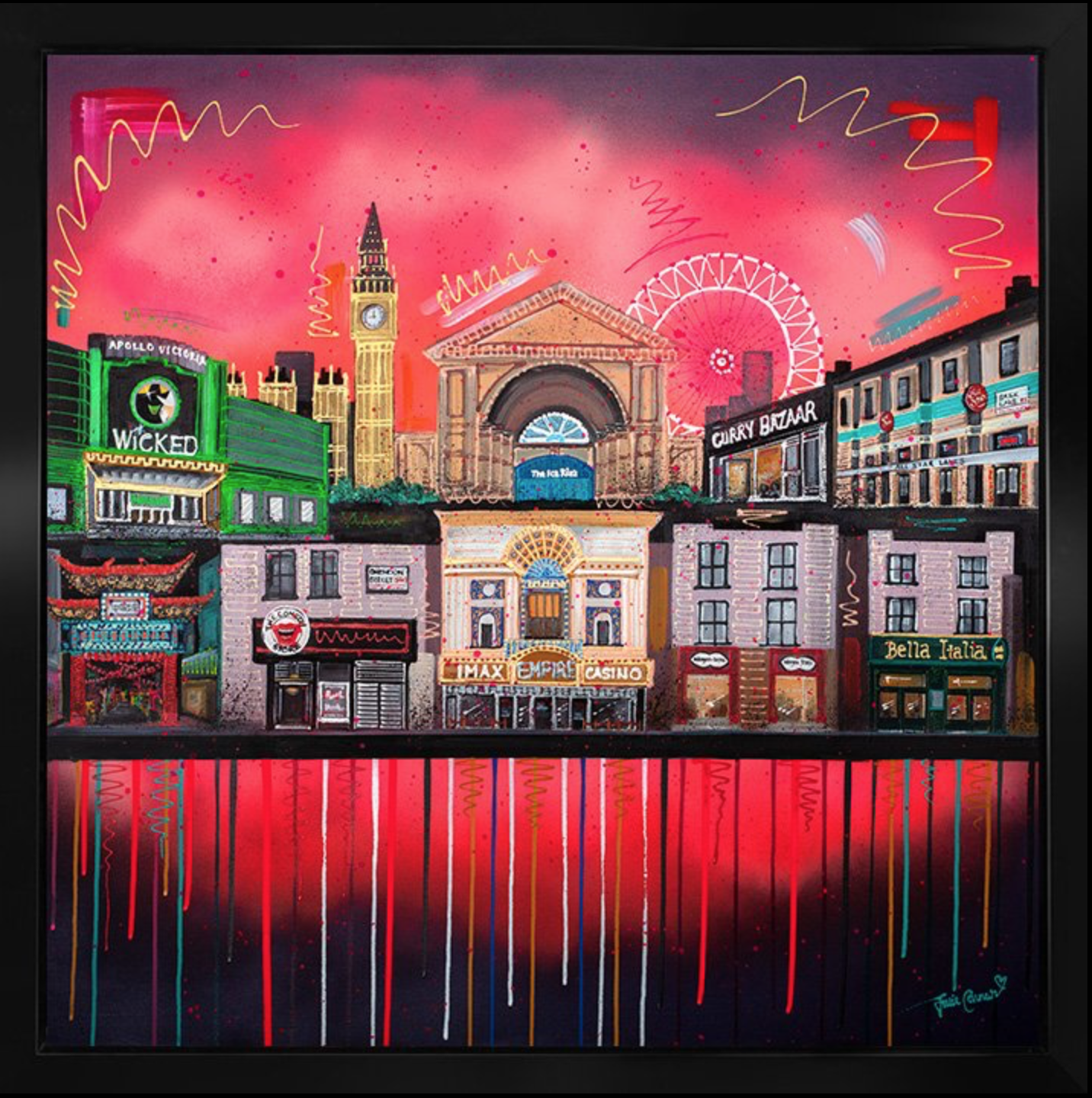 Step into the romance and energy of London after dark with Date Night, an original abstract cityscape by Julie Connor that captures the city’s vibrant heartbeat through the lens of evening adventures. From cozy dinners to theatre lights, iconic sights to late-night strolls, this piece celebrates the magic of shared moments in the city.