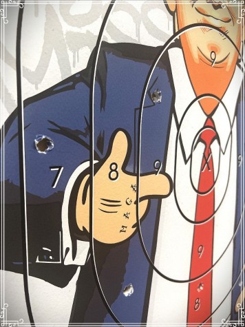 The limited edition series of "Did You Miss Me" are all 100% unique, with each "Range Target" print having individual & random torn holes to represent being "shot at".....