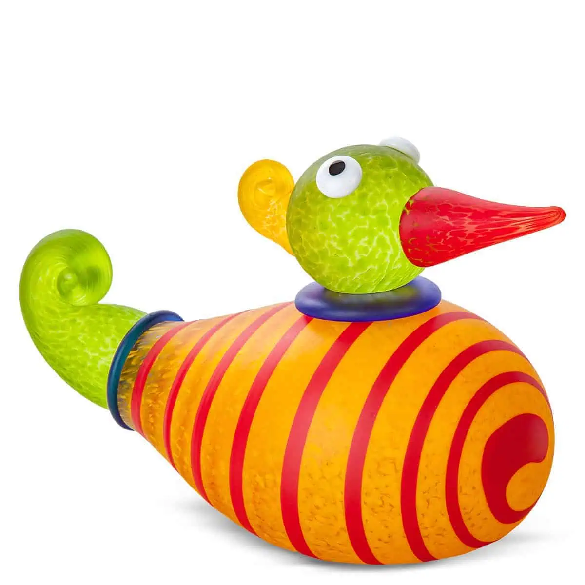Bring charm and vibrancy to your home with this lively duck from Borowski’s Studio Line. Crafted from hand-blown glass in crisp yellow, lime green, or blue, this playful design object enlivens windows, tables, or sideboards. Measuring 16 cm high, 23 cm long, and 12 cm deep, it works beautifully as a solo piece, in a group, or paired with plants and other décor accents. Each duck is handcrafted and unique, adding a one-of-a-kind touch to your living space.