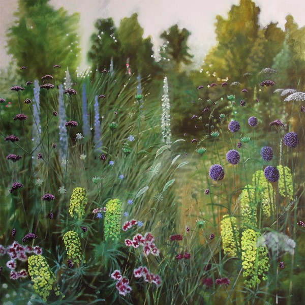 Transporting you to the calm and tranquil world of english gardens and the linking of Dylans photographic style to his painting technique creating an almost pixelated effect complemented with a perfectly in focus foreground.