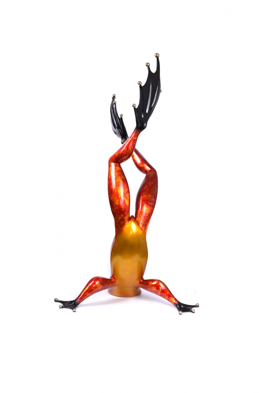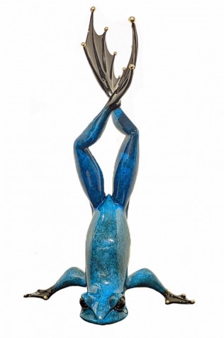 Larger than life, the perpetually upside-down FABIO officially joins – and rules – the FROGMAN pond!Available in the patina of your choice, this dramatic sculpture can acclimate to any environment, be it indoors or outdoors. Released in a very low edition of only fifty, the fabulous FABIO allows the collector the rare opportunity to partake in the process and is certain to become one of the pond’s classics.