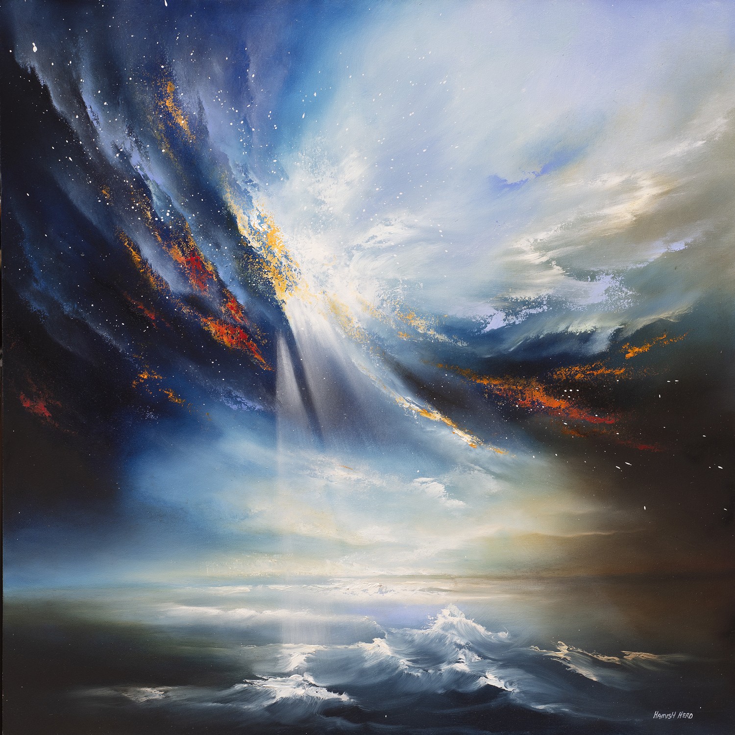 Favour by Hamish Herd is a mesmerising seascape that celebrates the ever-changing moods of the ocean. Through expressive brushwork and masterful use of light, Hamish captures the interplay of waves, sky, and coastal atmosphere, creating a sense of movement and depth. This artwork evokes both the calm and the power of the sea, drawing the viewer into its serene yet dramatic world. Ideal for collectors and lovers of marine landscapes, Favour embodies the timeless beauty and energy of the ocean.