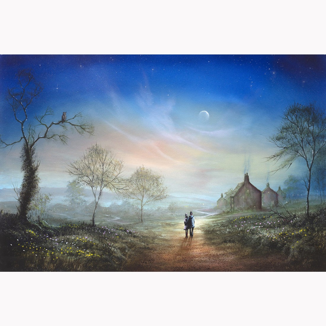 Heart Full of Stars is a captivating romantic scene rendered in Danny Abrahams’ signature vibrant and expressive style. The artwork evokes warmth, joy, and a sense of wonder, combining playful outlines with rich, luminous colours to create an unforgettable piece celebrating love and connection.