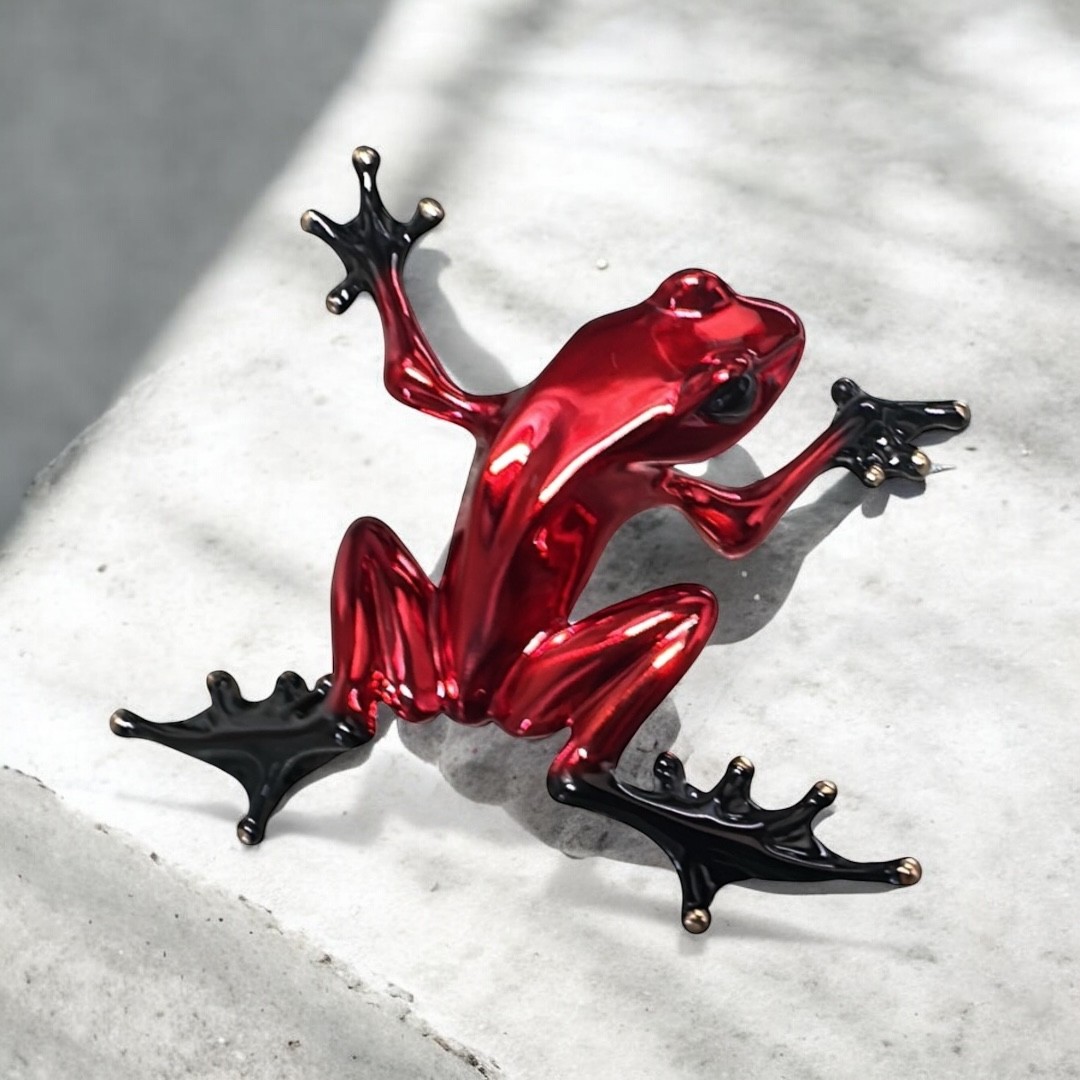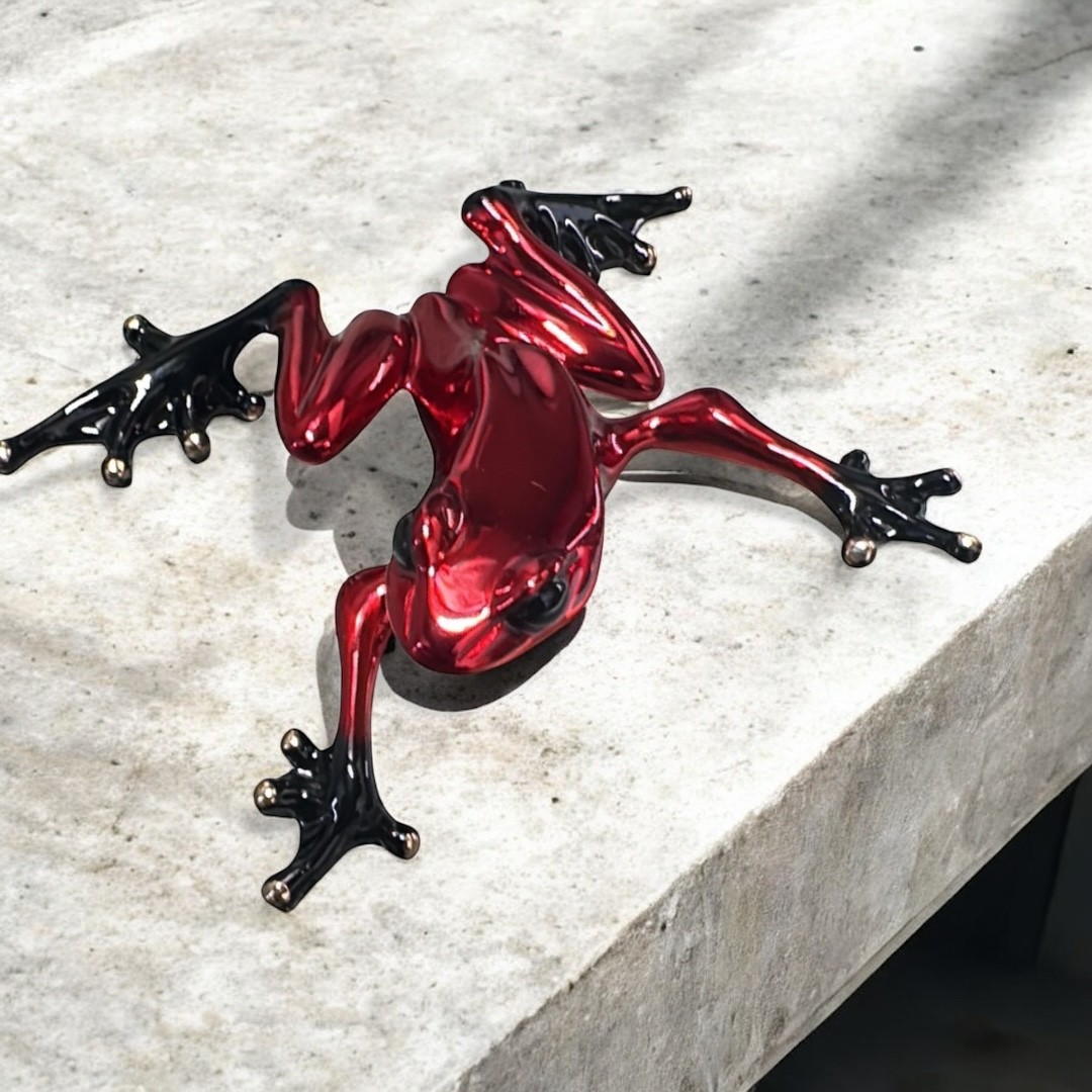 Captured in a dynamic, spirited pose, Jolly features a stunning bright red patina across its back and a brilliant, polished gold underbelly that glows with holiday charm.