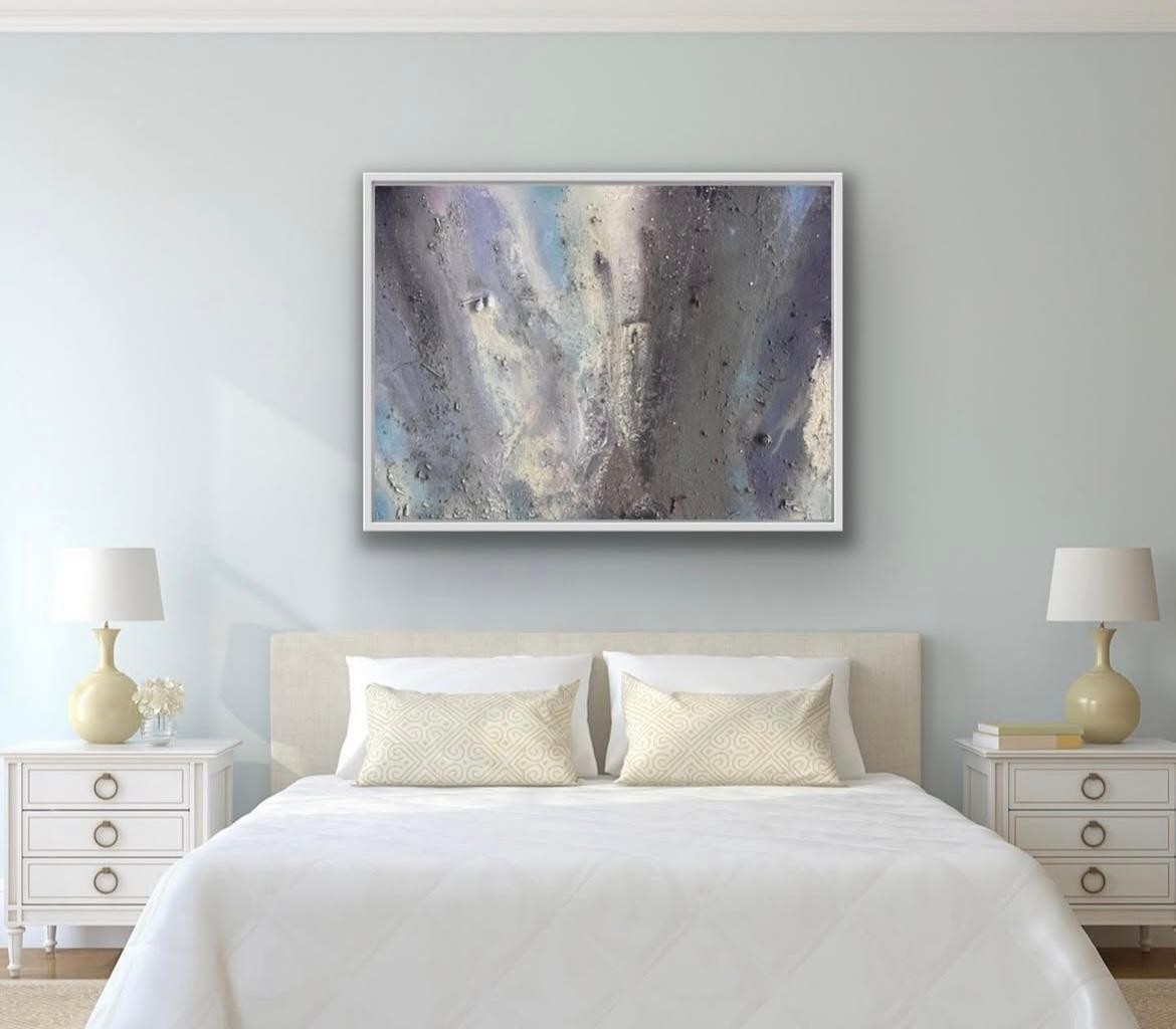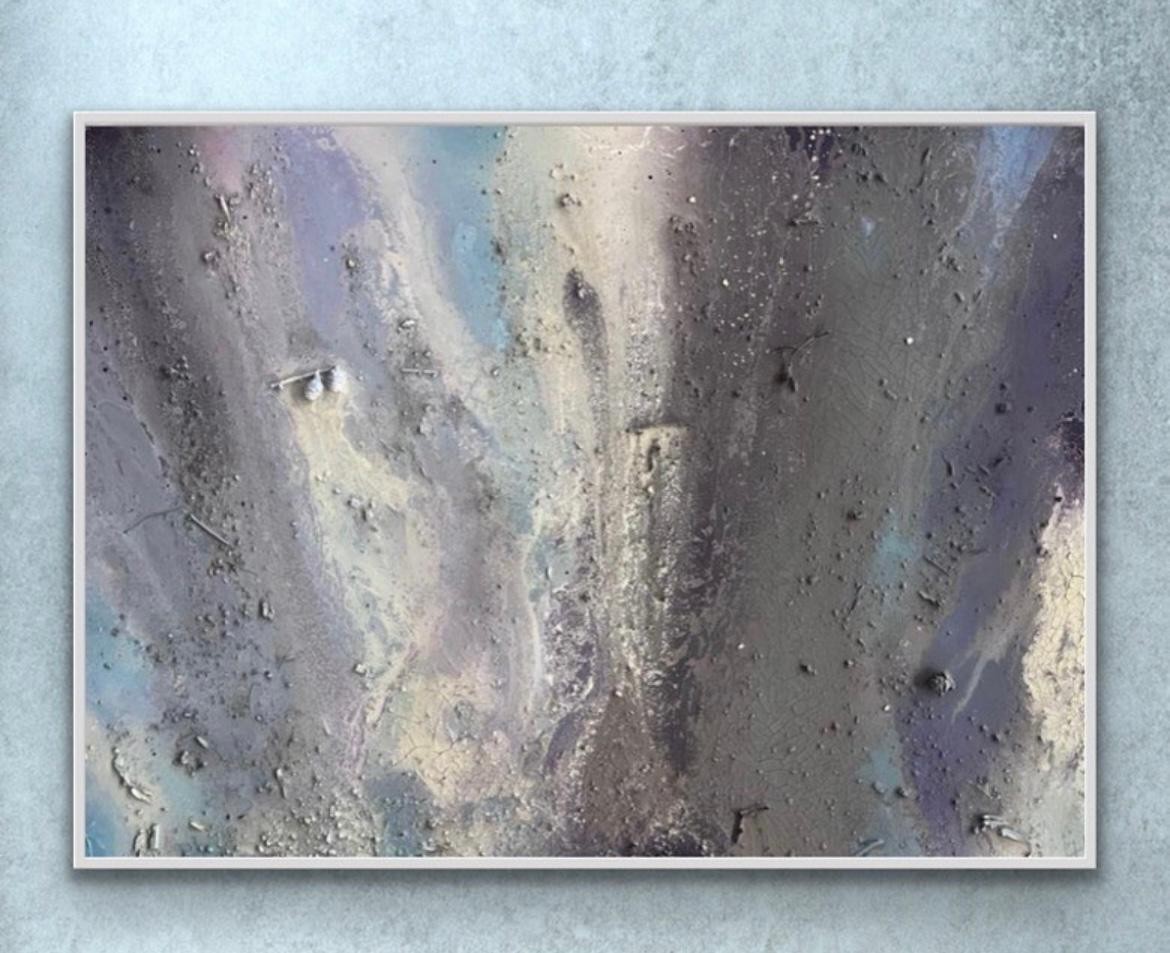 a stunning abstract Original artwork with raised 3D elements including real leaves and stones, by artist Wendy Satchwell.