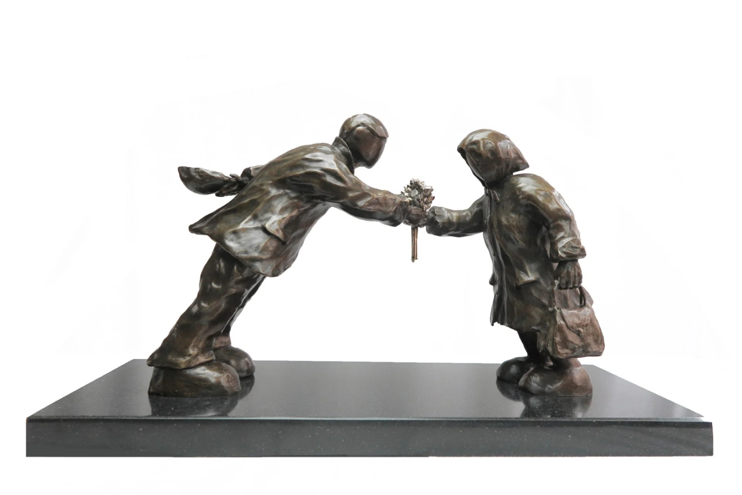 The sculpture is anchored on a solid granite base, grounding the emotional narrative with a sense of permanence and stability. The contrast between the warm patina of the bronze and the cool strength of the granite enhances the work’s presence, making it equally compelling in a private interior or a curated public space.