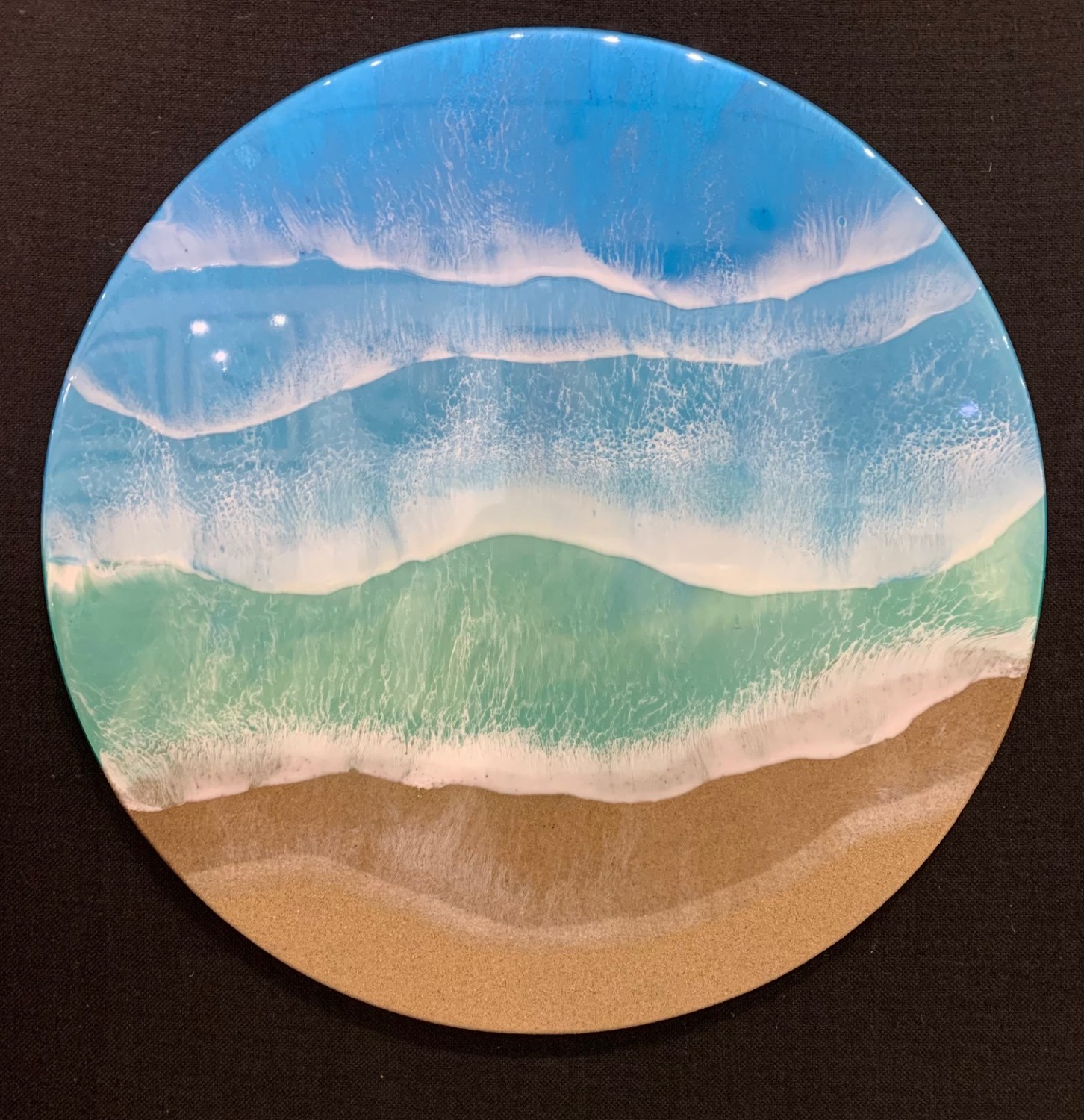 Inspired by nature and the sea (especially around his hometown of Bournemouth), this beautiful original includes resin elements and real Sandbanks sand, that look like an aerial view of the ocean.