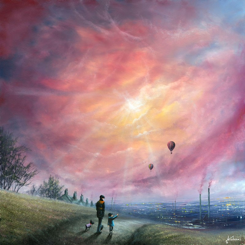 Like Father Like Son depicts a heartwarming moment between a father and his child, celebrating the bond of family through Danny Abrahams’ signature bright, vibrant, and playful style. With warm colours, charming outlines, and nostalgic storytelling, this limited edition canvas captures the joy, love, and connection of shared experiences.