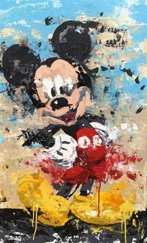 Mickey, an original artwork by artist Jessie Foakes. Depicting the iconic Mickey Mouse and using bold colours and large brush strokes, Foakes has effortlessly portrayed the vibrant, fun-loving Disney character.
