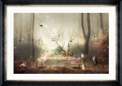 The wooden cottage in the background represents that industrious nature of the dwarves that are working so hard to protect. You have the animals coming out to surround the coffin. In complete contrast between the beautiful young deer and the wolf, you can look at it two ways. Is there a threat there or ultimately is it trying to protect? The all-seeing eye of the owl, again there is a conceptual thing there with seeing the dangers and trying to warn against.The key part of this image is the mirror. This concept of who is the most fucked up of them all, that is crucial as it shows how ‘Snow White’ is battling the constant demons within, where it’s a ‘Jekyll and Hyde’ character effectively and what that does is reveal that actually there is no evil Queen, that it’s not a separate character, that instead it’s a trait, a split personality.