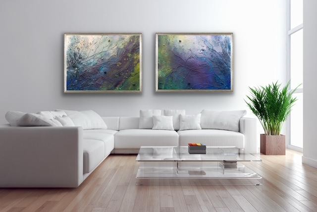 Natures Therapy I is a captivating original painting by contemporary artist Wendy Satchwell, created to evoke the quiet power and restorative energy of the natural world. This piece radiates movement and depth through its richly layered textures and serene color palette. Shades of blue, teal, and soft neutrals flow organically across the canvas, echoing the rhythms of water, wind, and earth.The composition feels alive—delicate lines sweep outward like branches or flowing currents, while subtle speckles and dimensional detailing invite the viewer to explore its surface up close. This artwork is both calming and invigorating, making it an ideal centerpiece for modern interiors seeking a touch of nature-inspired elegance.