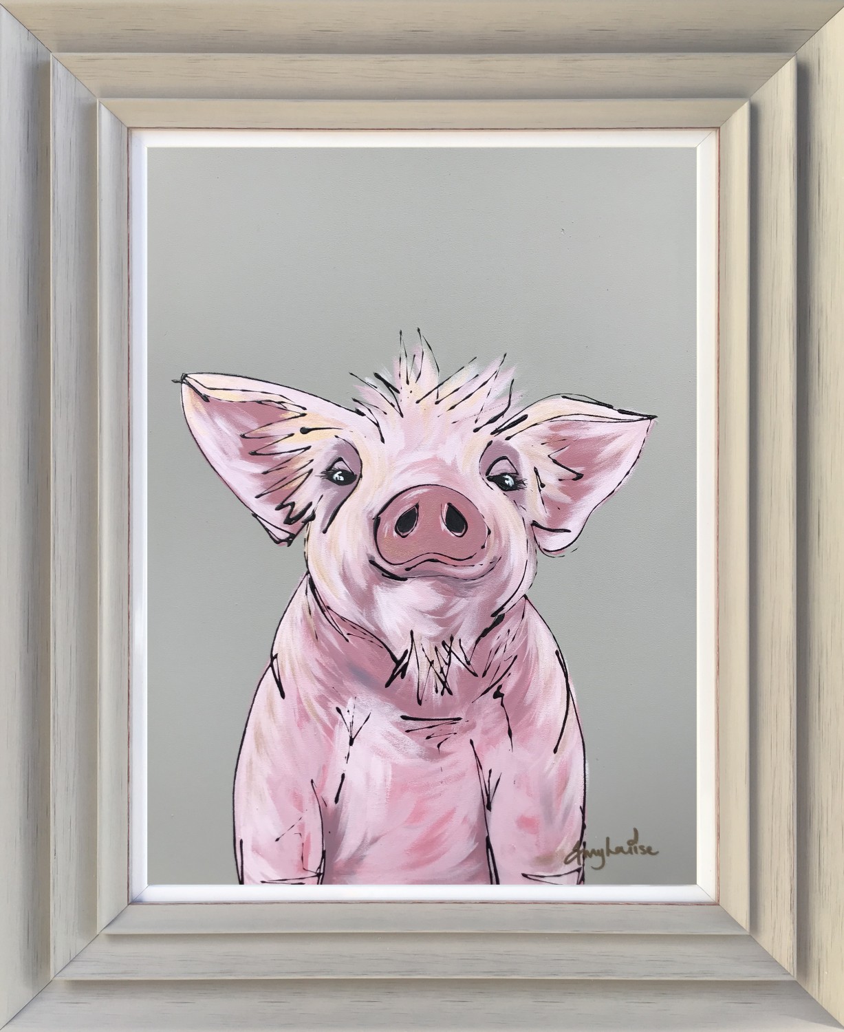 No, By The Hair On My Chinny Chin Chin - artist Amy Louise original painting.We don't think this piglet could be any cuter in this original painting by the talented Amy Louise. A delightful little piggy painted to perfection. This cheeky pink pal will make you smile. A fun, vivid original painting.This original painting - No, By The Hair On My Chinny Chin Chin - is 30 x 40 cm, and comes framed.
