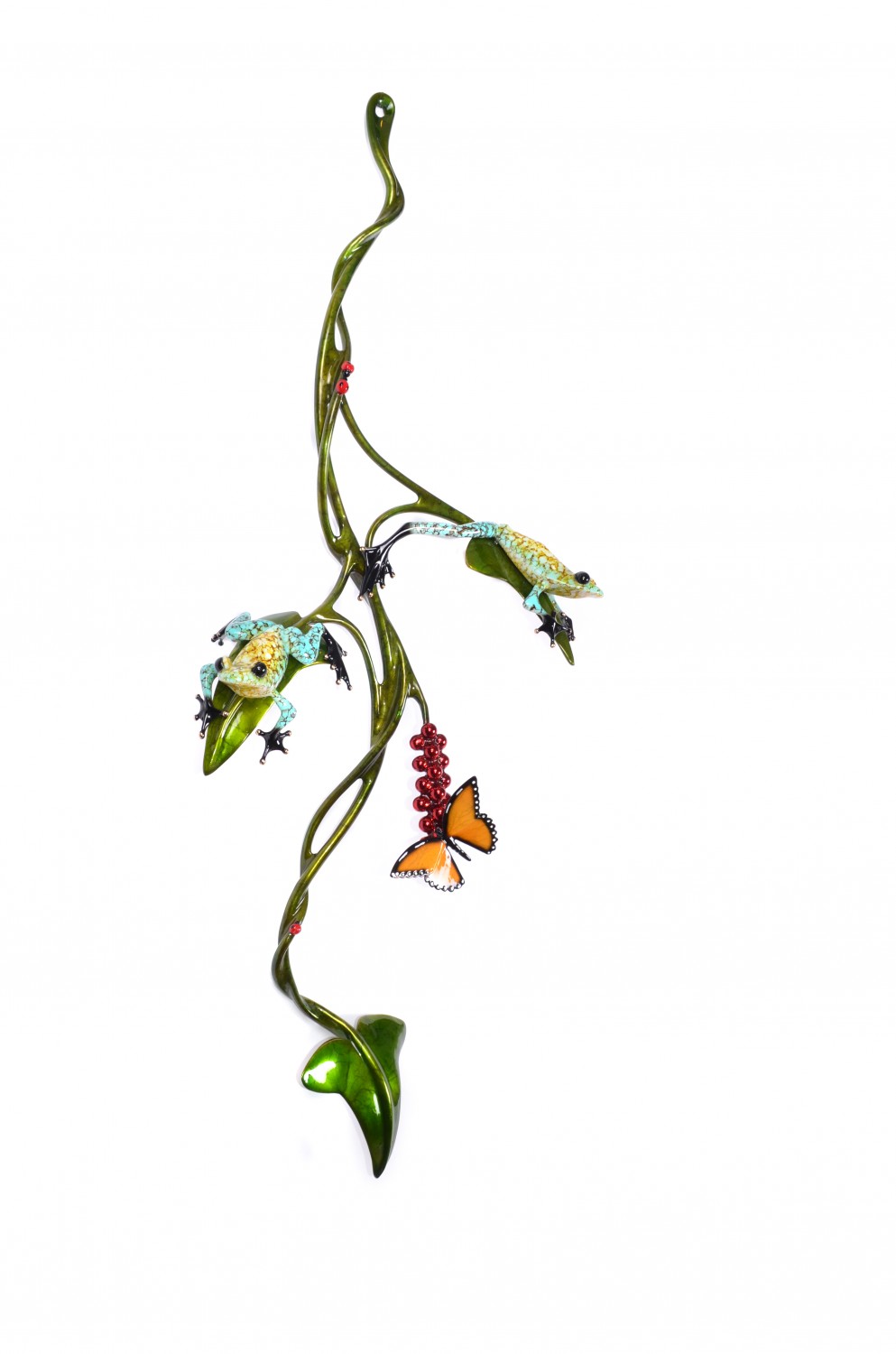 Two frogs stare inquisitively from an intricate, winding vine. The frogs have a unique yellow-blue patina, with gorgeous ladybirds and butterfly decorating the vine. In an edition size of just 400, be sure to secure your order today!Off The Wall