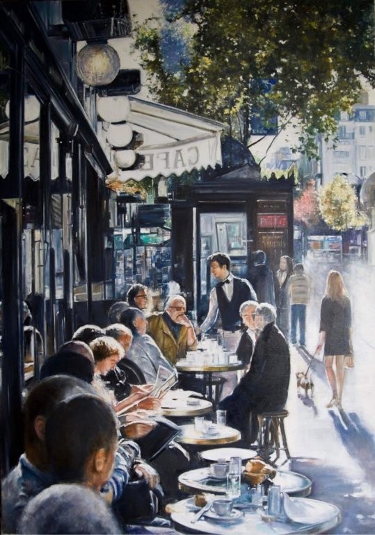 Andrew Kinsman captures the feeling of cafe life in this latest collection. Who wouldn't want to be there now - the continental cafe, the warm Spring sunshine, a shaded table away from the bustle of the street and a coffee with friends.