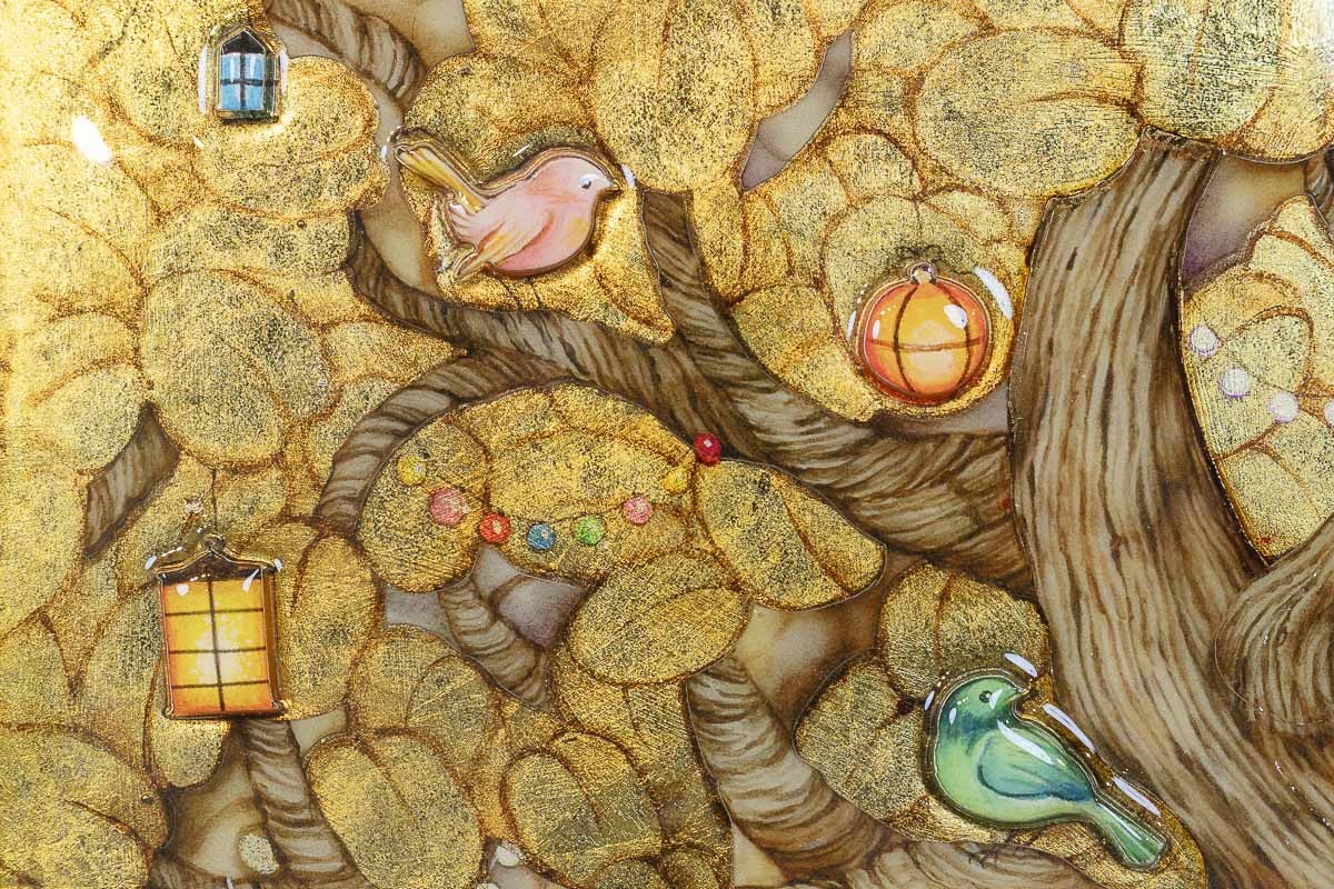 Each limited edition is finished with luminous resin and intricate 3D detailing, bringing depth to the branches and foliage. The gold leaf canopy shifts gently with the light, adding warmth and atmosphere throughout the day.