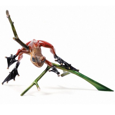 This gorgeous sculpture shows a red and gold silver nitrate frog making his way across a branch.