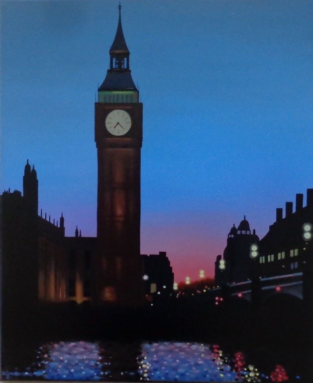 Night falls at the Palace of Westminster, with the Elizabeth Tower highlighted against the darkening sky. What debates will take place in Parliament tonight.....another all night sitting is in prospectOriginal Oil on Canvas