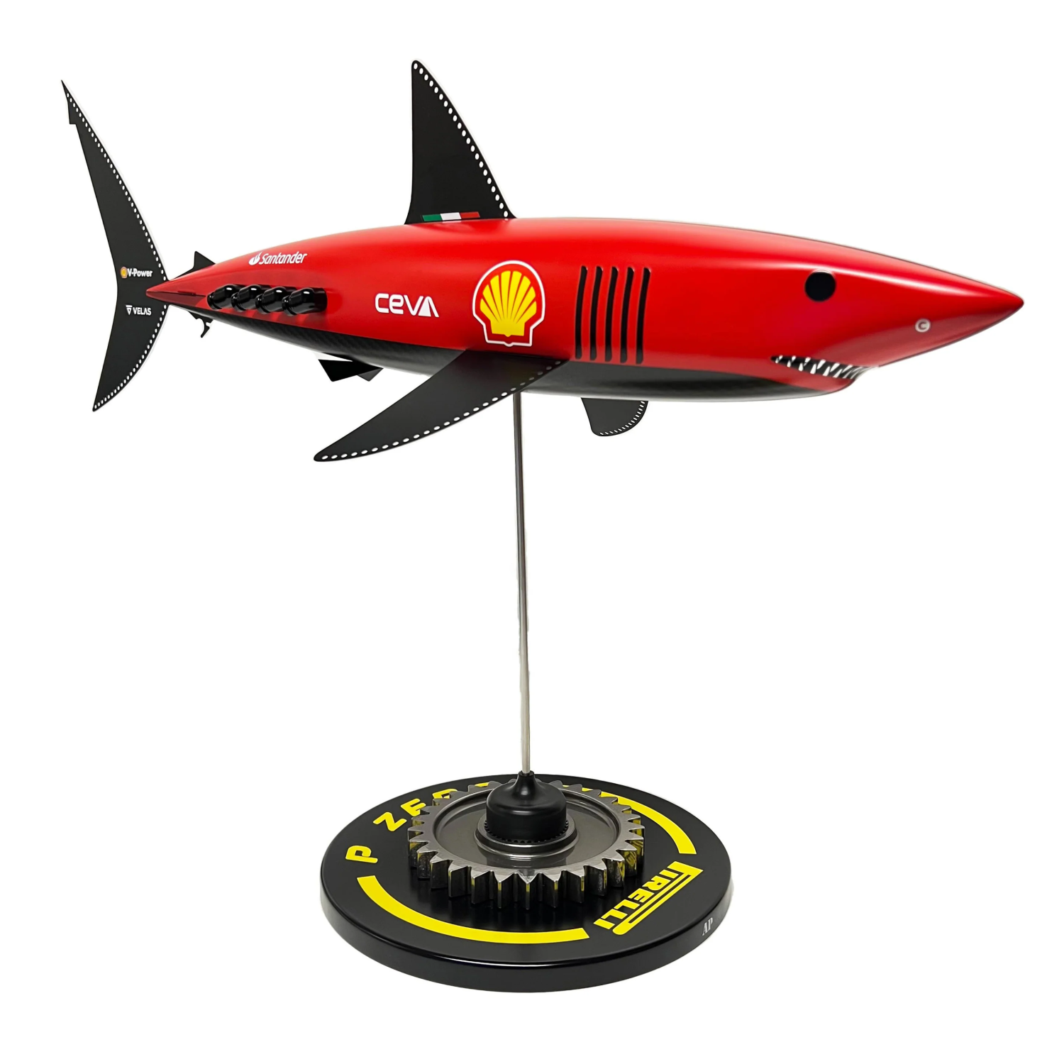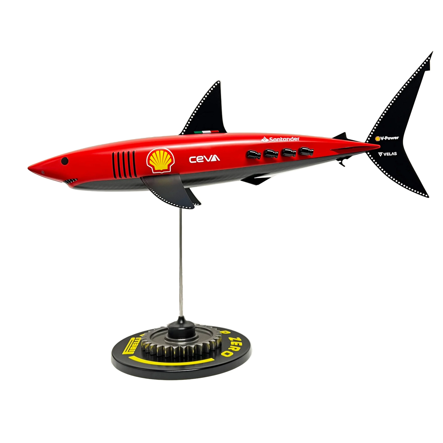 Selected components and materials used in the sculpture are sourced from modern Grand Prix cars, integrating authentic motorsport engineering into the piece. The Red Racing Mako Pup is a unique collectible, celebrating the perfect intersection of nature, art, and Formula One performance.