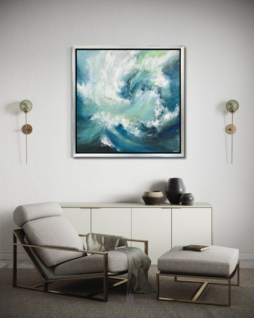The composition draws the viewer into the moment of impact as waves collide, creating a sense of movement and atmosphere.Ideal for collectors of original art, coastal décor enthusiasts, or anyone seeking a bold statement piece, “Sea Crash” adds depth and energy to any interior space