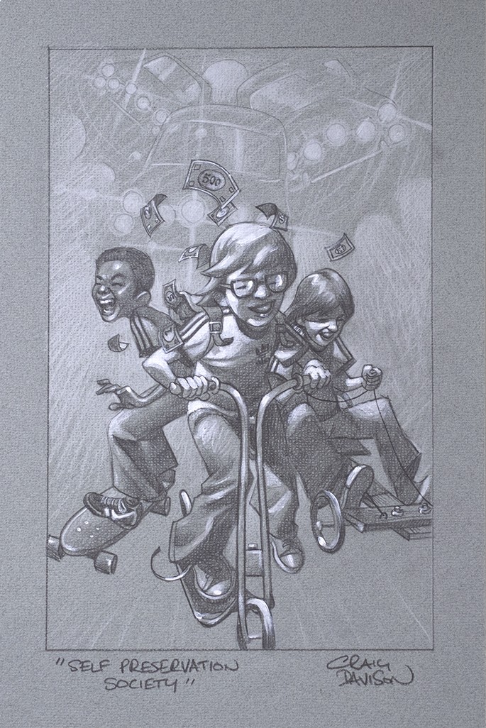 Self Preservation Society (sketch), a nostalgic limited edition artwork by artist Craig Davison. From the Winter 2021 "Reinventing The Wheel" 80s and 90s bicycle based collection.