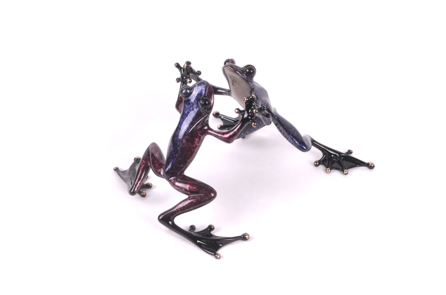 Soulmates is a beautifully expressive solid bronze sculpture that captures a moment of tenderness and harmony between two frogs. The sculpture measures 3.5" x 7.5" x 5.5"