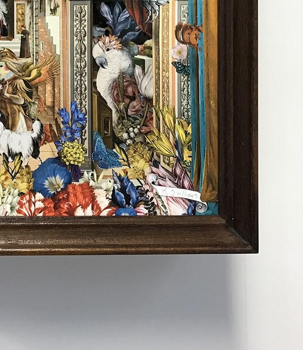 A re-imagining of Carlo Crivelli’s Annunciation with Saint Emidius where the humans have been replaced with white cockatoos, this is again dwelling into architecture the original painting has been duplicated and mirrored to enhance the feel of the drama of the perspective which is so incredibly sharp in mind bending detail.