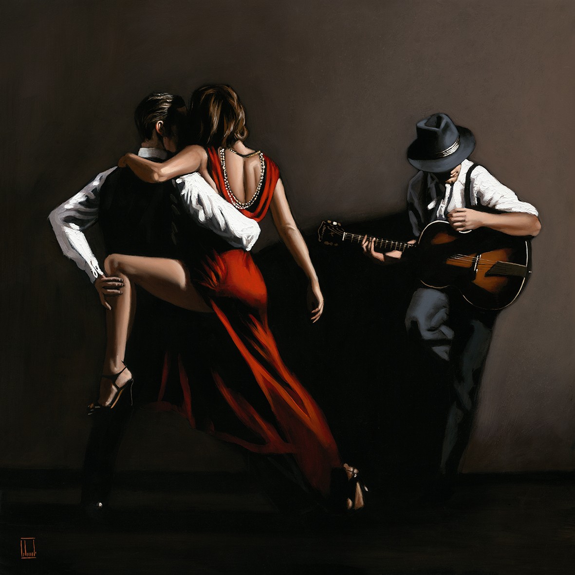 A Westover exclusive, limited edition by artist Richard Blunt, who is well known for his glamours paintings and this one is no exception! The Tango features a well dressed couple caught in the mist of a passionate dance as a musician plays guitar to their right, eyes locked, they dance the night away.