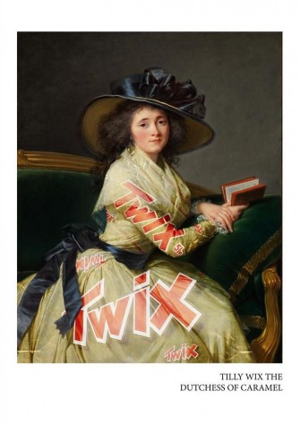 The title of each artwork is carefully constructed to become a playful take on a well-known brand, in the same style and era of the chosen figure. With this clever merging, the historical subject seems to take on the prestigious role of owner or founder of that confectionary item.