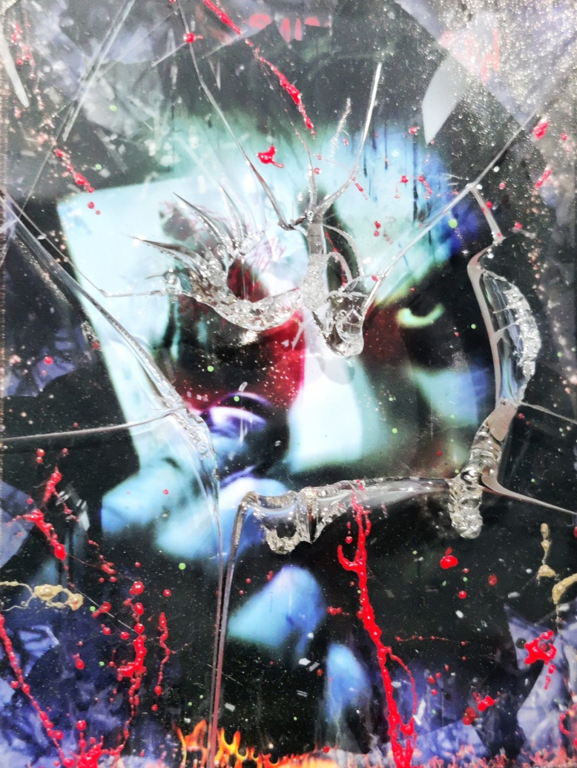 Floated VHS cassette, embellished board, playing cards in relief, smashed and painted perspex with bespoke float mount and frameEdition Size: 20 + 5 APs