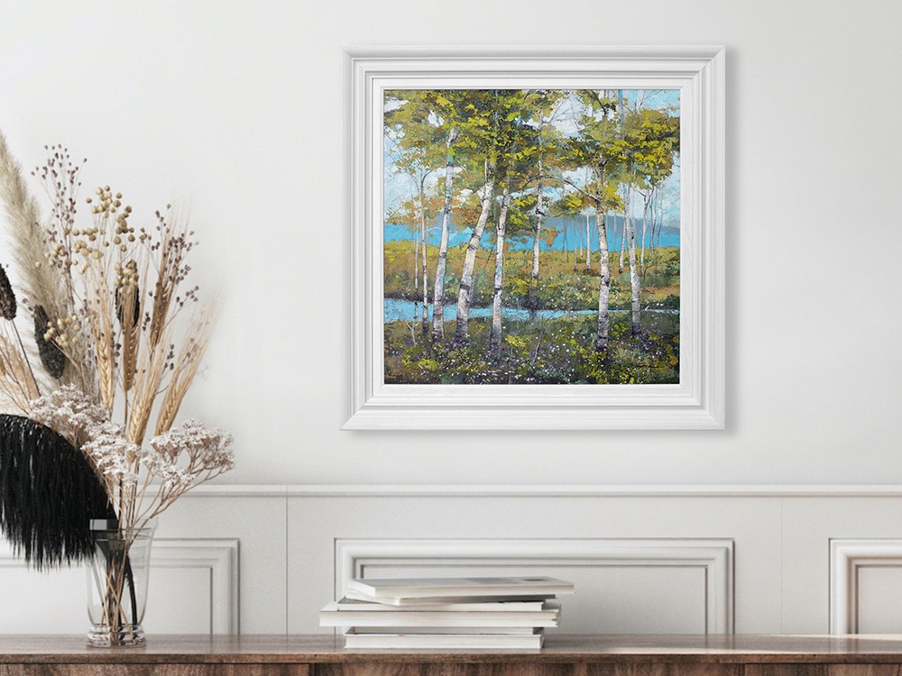 This latest collection brings together four original artworks, each inspired by the tranquil charm of genuine rural woodland settings near the artist’s Cornish studio. Capturing the essence of spring, these pieces evoke a sense of quiet escape — where light dances through emerging leaves, paths invite gentle exploration, and nature reveals its subtle, ever-changing beauty.