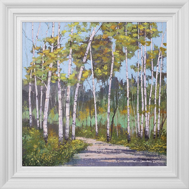 This latest collection brings together four original artworks, each inspired by the tranquil charm of genuine rural woodland settings near the artist’s Cornish studio. Capturing the essence of spring, these pieces evoke a sense of quiet escape — where light dances through emerging leaves, paths invite gentle exploration, and nature reveals its subtle, ever-changing beauty.